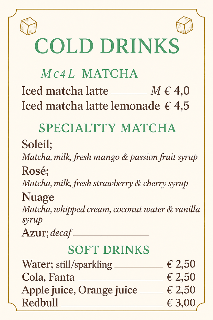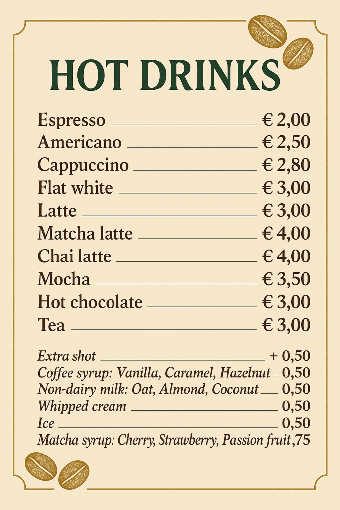 check our menu now!cold drinkhot drink
